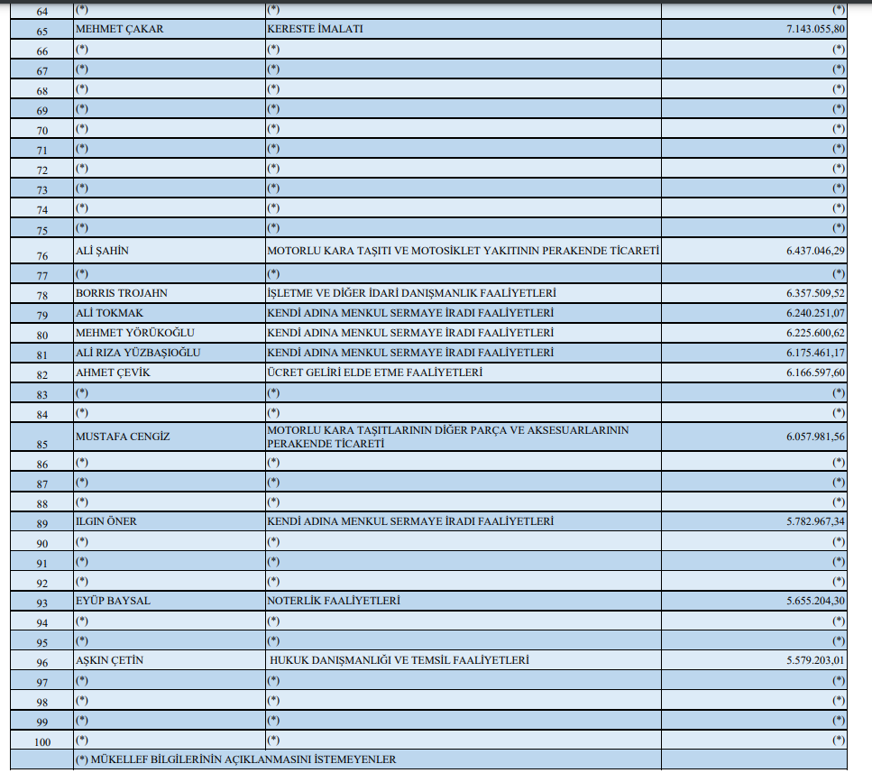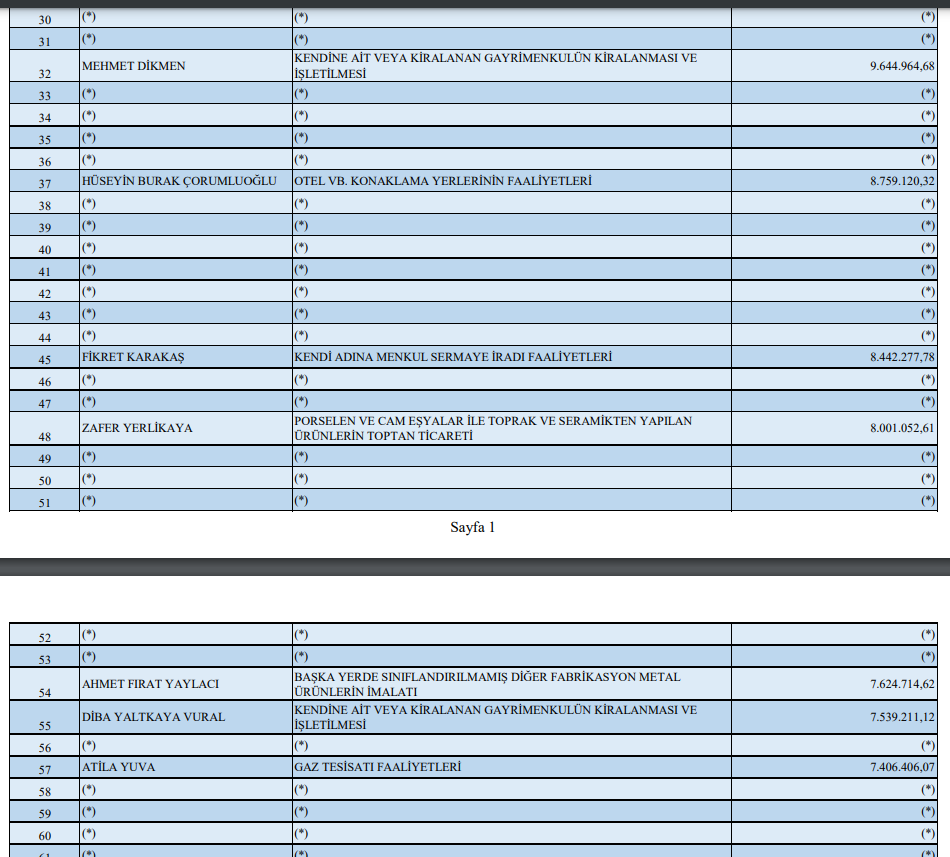 Antalya’da en yüksek gelir vergisi beyan eden ilk yedi kişi içinde Cömertoğlu Ailesi üyelerinin sıralaması şu şekilde gerçekleşti: Ufuk Cömertoğlu – 49.327.988,44 TL, Yıldırım Cömertoğlu – 42.368.391,04 TL, Tolga Cömertoğlu – 42.017.141,11 TL, Egemen Cömertoğlu – 20.683.012,42 TL ve Alper Cömertoğlu – 20.670.524,50 TL. Listenin en tepe noktasında yer alan Ufuk Cömertoğlu, tek başına beyan ettiği 49,3 milyon TL’lik gelir vergisi ile Antalya’nın 2024 yılı vergi rekortmeni olma unvanını elde etti.